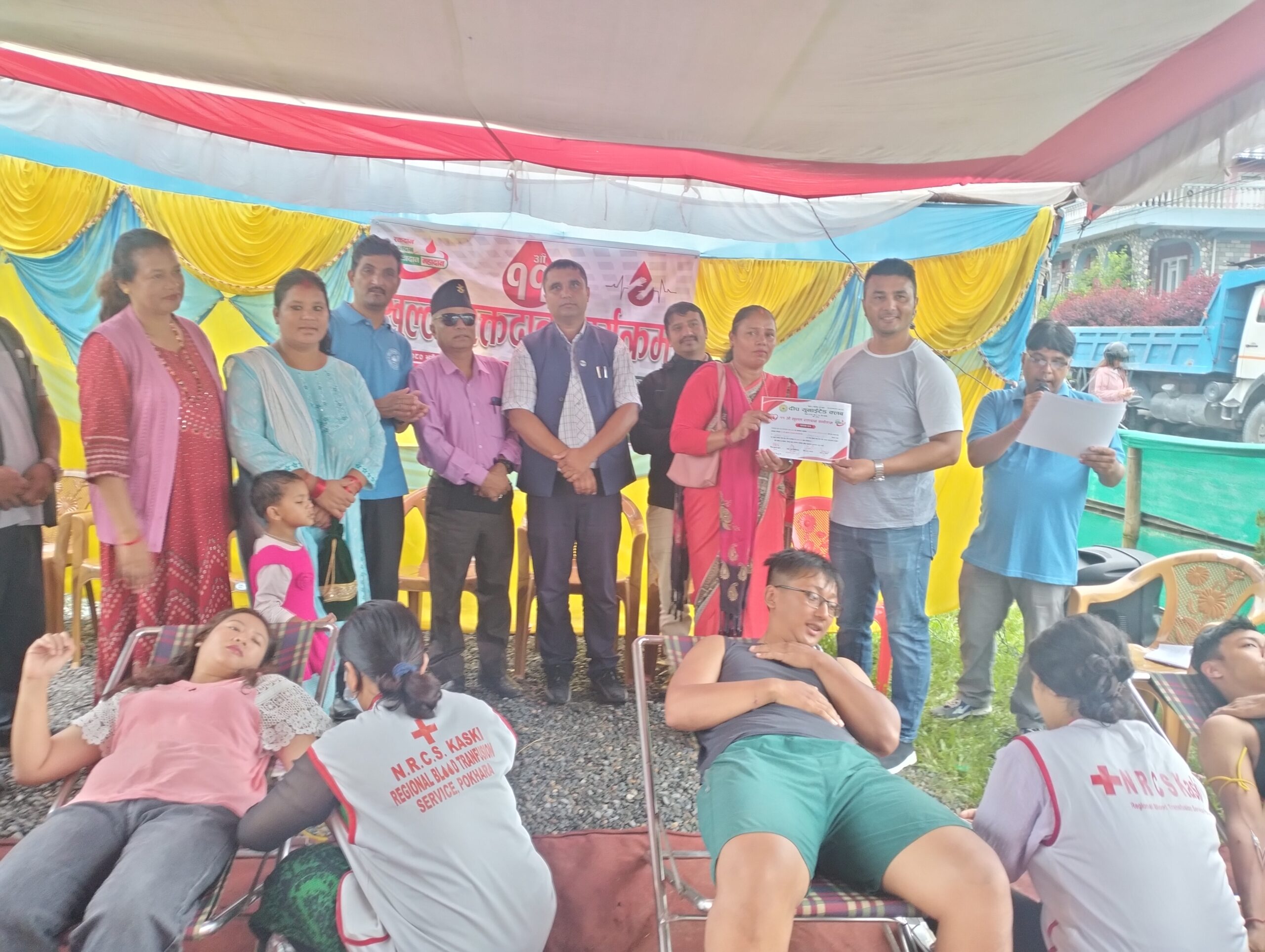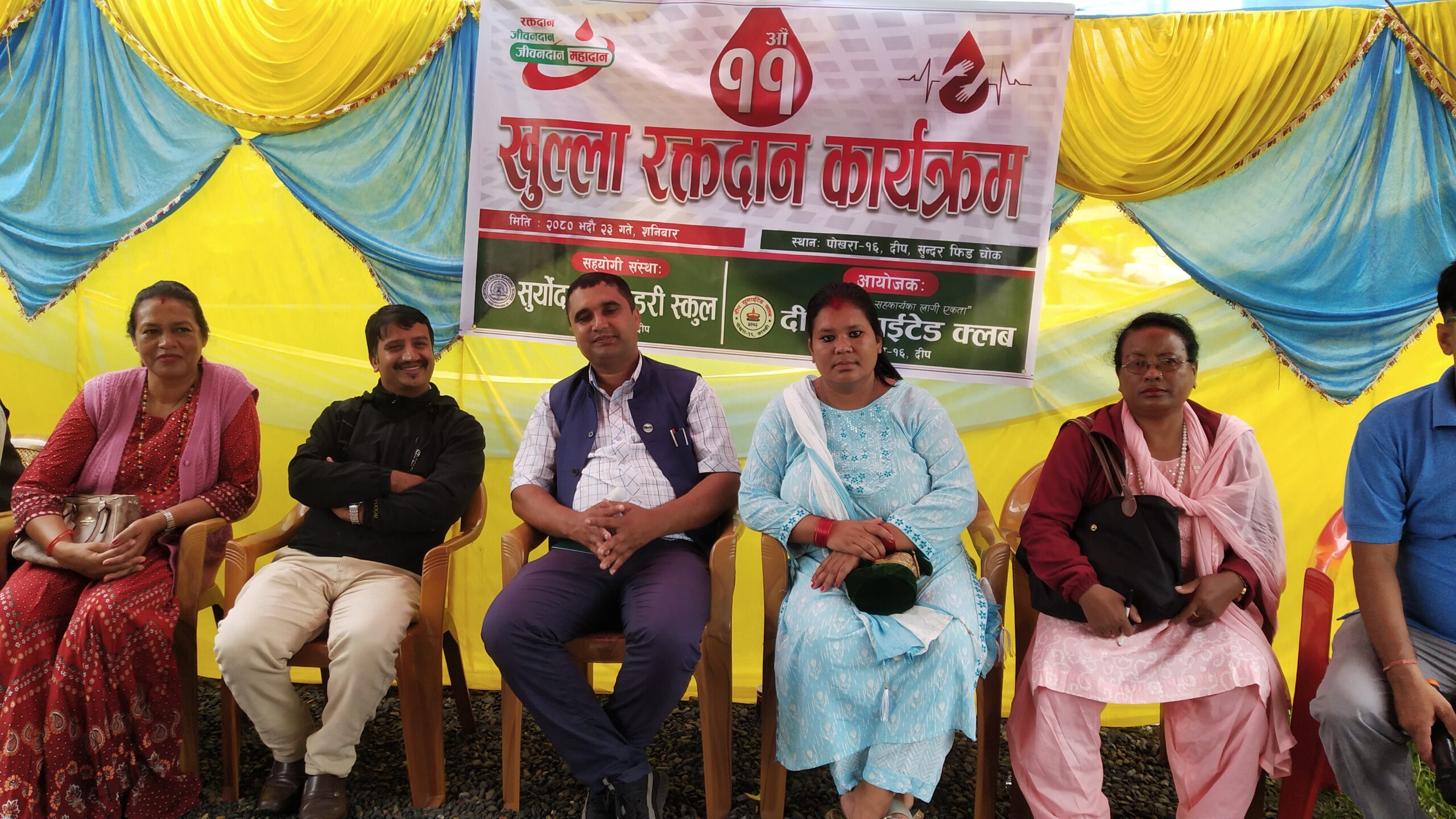 सामाजिक क्षेत्रमा कृयासिल सस्था दीप युनाइटेड क्लबले हरेक बर्ष रक्तसदान कार्यक्रम गर्दै आएको प्रती आभार ब्यक्त गर्दै प्रमुख अतिथी अमृत शर्माले आयोजकको योगदानको उच्च मुल्यांकन गर्दै क्लबलाइ स्थानीय तहको सहयोग रहने प्रतिबद्धता जनाएका थिय । सुर्योदय सेकेन्डरी स्कुलको सहयोग र दीप युनाइटेड क्लबको आयोजनामा भएको खुल्ला रक्तदान कार्यक्रमको सयोजक क्लबका उपाध्यक्ष बिष्णु गुरुङ्ले स्वागत मन्तब्य ब्यक्त गरेको कार्यक्रमको सन्चालन क्लबका सचिब भिम प्रसाद आचार्यले गरेका थिए । दीप युनाइटेड क्लबका अध्यक्ष खेमराज आचार्यको अध्यक्षतामा आयोजित खुल्ला रक्तदान कार्यकक्रममा रक्तसञ्चार केन्द्र रामघाट पोखराको प्राबिधिक सहयोगमा भएको कार्यक्रममा वडा नम्बर १६ का जनप्रतिनिधिहरु रामकाजी गुरुङ , रामचन्द्र आचार्या , राजकुमारी बानियाँ र मन्जु नेपालीको उपस्थिति रहेको थियो ।