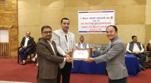 औषधी ब्यबस्यीहरुको छाता सस्था नेपाल औषधि ब्यबसायी संघ गन्डकी प्रदेश समितिको नवनिर्वाचित कार्यसमितिलाई पद तथा ओहोदाको प्रमाणपत्र बितररण गरिएको छ । असार १० गते सम्पन्न दोस्रो अधिबेसनबाट सर्बसम्मत निर्बाचित भएका अध्यक्ष ,पदाधिकारी तथा सदस्यहरुलाइ निर्बाचन सयोजक वरिष्ठ अधिबक्ता सुरेन्द्र थापा मगरले प्रमाणपत्र प्रदान गरेका थिए ।