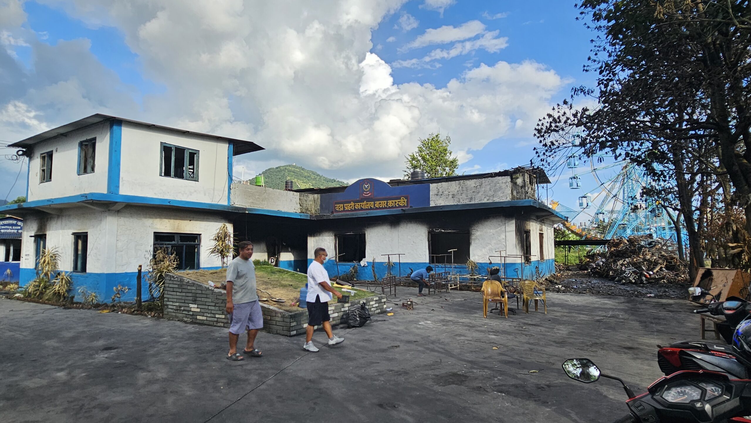 पोखरामा जलाइएका प्रहरी कार्यालय स्थानियले बनाउदै , बगर प्रहरी कार्यालय सामुदायिकले मर्मत सुरु गर्यो