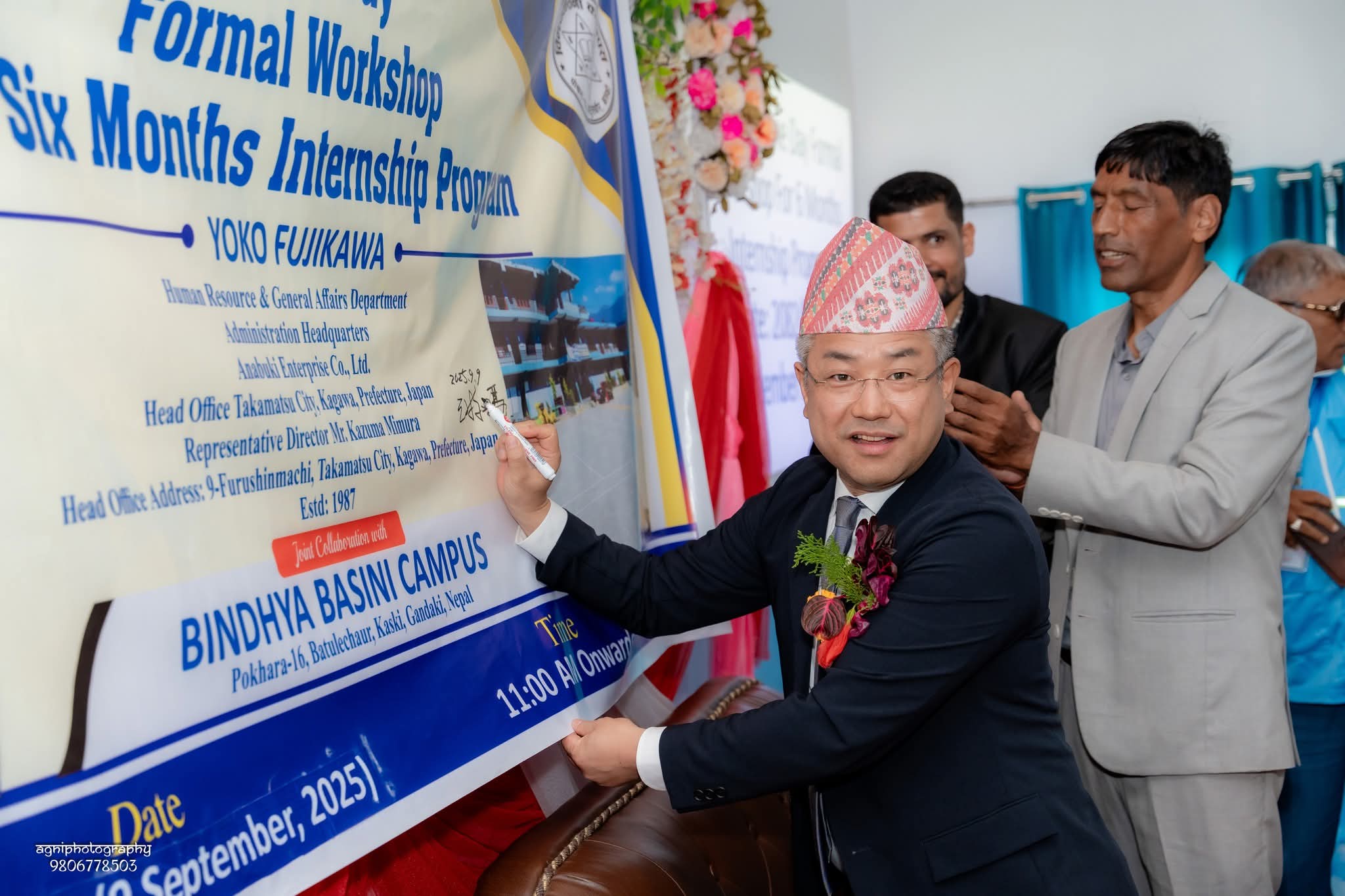 अनावुकी इन्टरप्राइजेज कम्पनी लिमिटेड योको फुजिकावा जापानका प्रमुख काजुमा मिकोरा सहितको टिमले बिन्ध्यबासिनी क्याम्पस प्रशासन र ब्यबस्थापन सङ्ग एक दिवसीय औपचारिक कार्यशाला गोष्ठी आयोजना गरि ६ महिने इन्टर्नसिपको बारेमा सरोकारवालाहरुसङ्ग अन्तरकृया कार्यक्रम गरि दुबै पक्ष बीच योजना र धारणा सार्बजनिक गर्दै सरोकारवालासङ्ग राय सुझाव सङ्कलन गरेको थियो । कार्यशालामा उठेका जिज्ञासाको जवाफ क्याम्पसका प्रशासन र जापानको कम्पनी प्रमुखले दिएका थिए ।