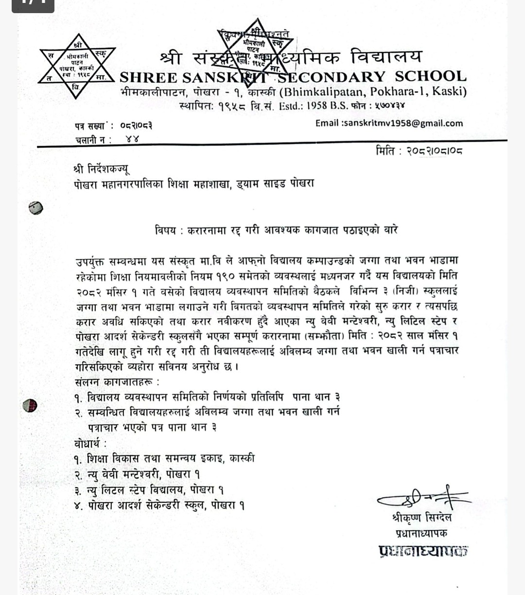 सस्कृत माविले सरकारी बजेटमा बनाइदिएको पक्की भवन बेबि मन्टेस्वरी नामको निजि शिक्षण सस्थालाइ भाडामा लगाएर आफ्ना बिध्यार्थिलाइ कच्ची जोखिमपूर्ण भवनमा राख्दै आएको छ । करिब डेड दशक देखि स्वार्थ बाझिने निजि सस्था मन्टेस्वरिलाइ भाडामा लगाउदै आएको छ । सस्कृत माविले लिटिल स्टेप बोर्डिङलाई ४० बर्ष देखि र , पोखरा आदर्श मावी समेतलाइ दुई दशक देखि भाडामा लगाउदै आएको छ । मङ्सिर ८ गते ती बिध्यालयहरुलाइ बोधार्थ दिदै पोखरा महानगर शिक्षा महाशाखा , शिक्षा बिकास तथा समन्वय इकाइ कास्किलाइ बिब्यसको निर्णय जानकारी गराएको छ ।