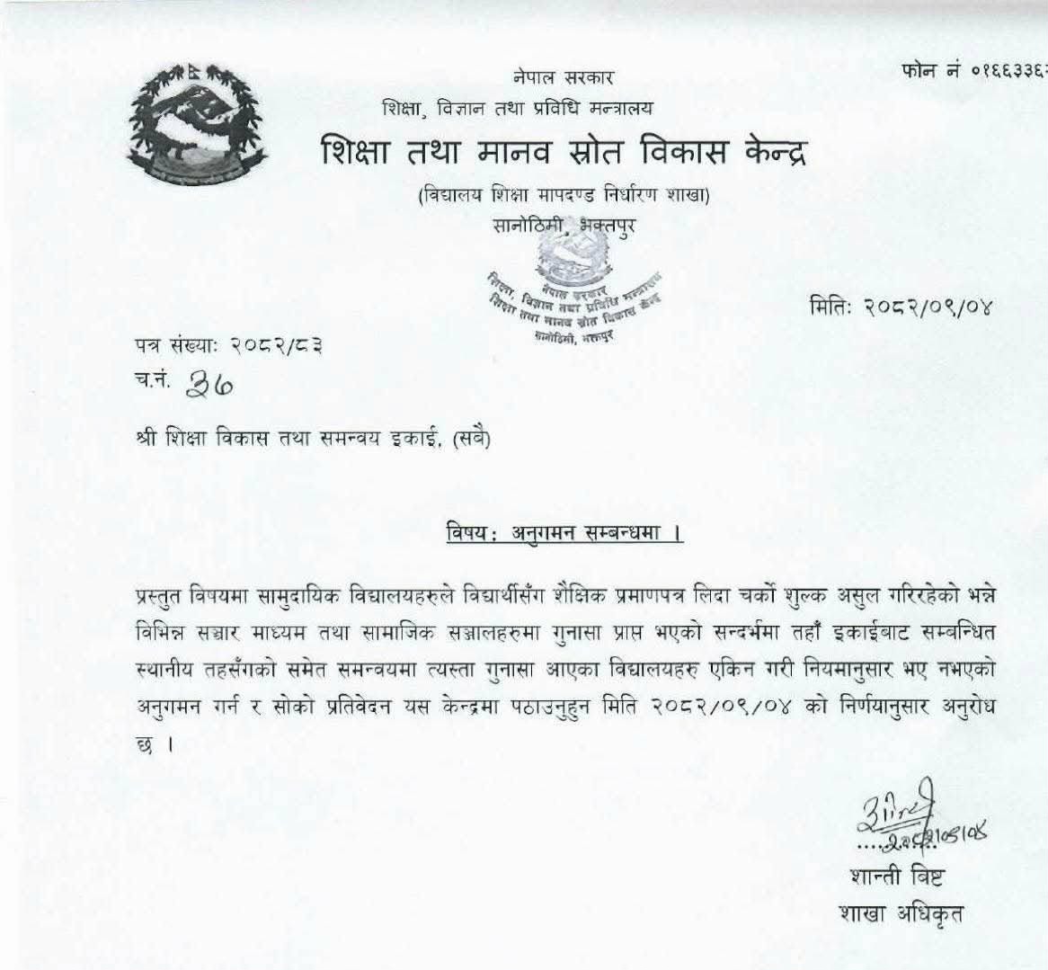 सरकारले शिक्षा क्षेत्रमा सबैभन्दा बढि राज्यको लगानी गरेको छ तर बिडम्बना न त्यसको प्रतिफल आएको छ न असुली धन्दा नै रोकिएको छ । शिक्षा तथा मानव स्रोत बिकास केन्द्र भक्तपुरले पुष ४ गते देशभरका ७७ वटै शिक्षा बिकास तथा समन्वय इकाइमा पत्राचार गरि बिध्यालयहरुको अनुगमन गरि प्रतिबेदन पठाउन भनेको छ । आगामी दिनमा यस्ता असुली धन्दा कसरी अघि बढ्छ त्यो आगामी दिनले बताउछ हामी नियमित खबरदारी गर्नेछौ ।