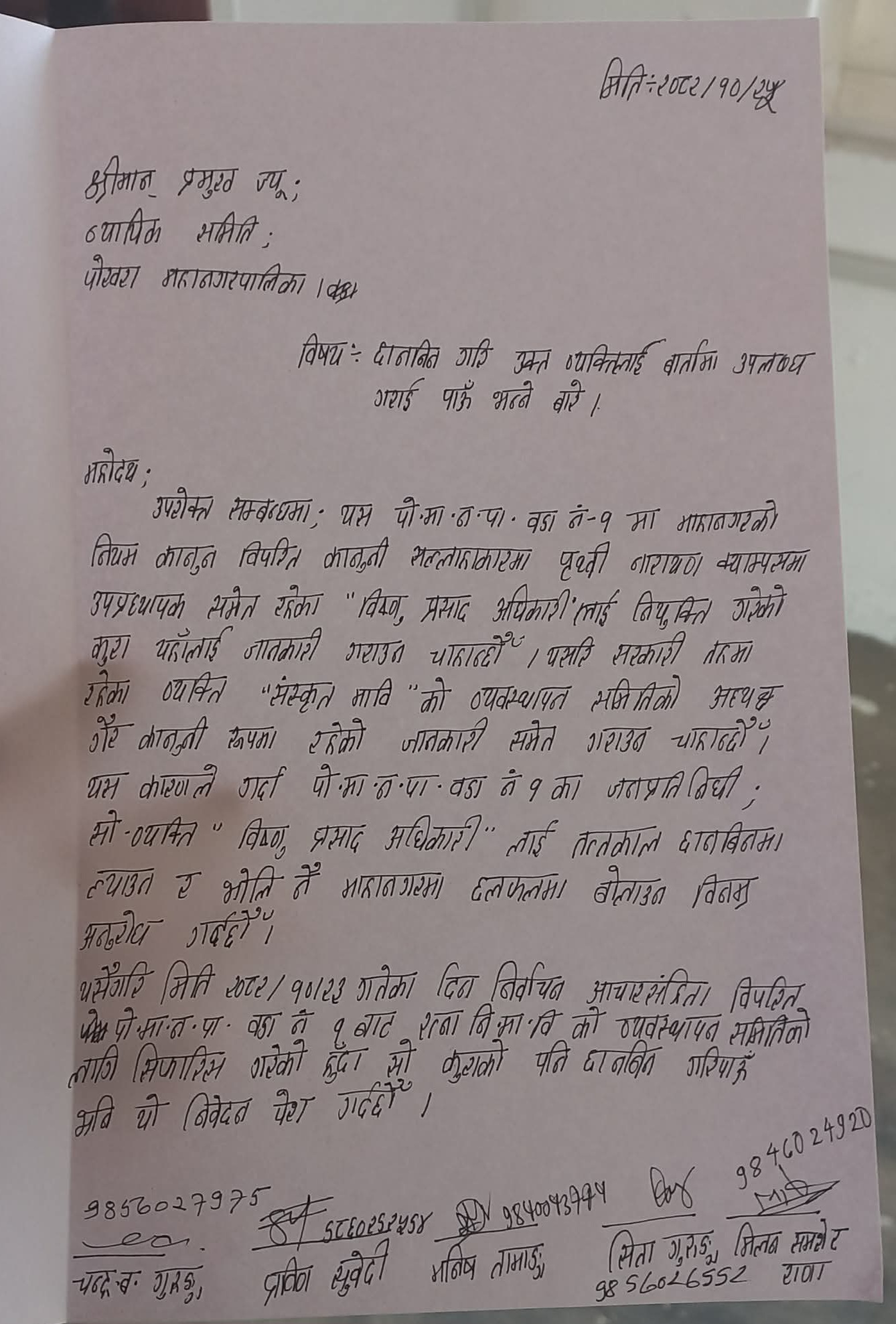 पोखरा महानगरपालिका वडा न १ अन्तरगतको वडा शिक्षा समितिले रत्न आधारभुत बिध्यालयको बिध्यालय ब्यबस्थापन समितीको अध्यक्ष बनाउने योजना सहित माघ २३ गते २ जना सदस्य काजिमान लामा र महेस्वर दवाडिलाइ मनोनीत गर्ने निर्णय रद्द गरिएको जानकारी प्राप्त भएको छ । २६ गते वडाका सचिब पोस्ट नारायण ढकालले निर्णय माइन्युटको पुच्छरमा “आचारसंहिताको समयमा यो निर्णय भएको हुदा रद्द गरिएको छ” भन्ने उल्लेख गरेर निर्णयको कपि सराङ्कोटलाइ उपलब्ध गराएकाछन । महानगरका ७ औ तहका कर्मचारीले माघ ५ गते देखि लागेको आचारसंहिता थाहा नपाउनुलाइ बिडम्बना मान्ने कि सेटिङमा सलग्नता? जनप्रतिनिधिले गर्ने मनोमानी कार्यलाइ रोक्ने कर्मचारी आफै सलग्न भएपछी अराजकताले सस्थागत मान्यता पाउनुलाइ ठूलो कुरा मान्न सकिन्न । निर्वाचनको आचारसंहिता कार्यान्वयनमा लाग्न सबैको ऐक्यबद्धता आवश्यक रहेको छ ।