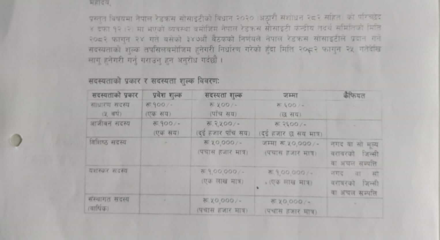 सदस्यता शुल्क दोब्बर बढाइएको छ । ५ सयमा दिने आजिबन शुल्कलाइ २५ सय बनाएको छ भने ५० रुपैयाको साधारण सदस्यता शुल्कलाई ६ सय बनाइएको छ । विशिष्ट सदस्यता २५ हजार बाट ५० हजार पुर्याइएको छ । एसस्कर सदस्यता शुल्क ५० हजार बाट बढाएर १ लाख पुर्याइएको छ । सस्थागत सदस्यता शुल्क बार्षिक ५० हजार रुपैया बनाइएको छ ।